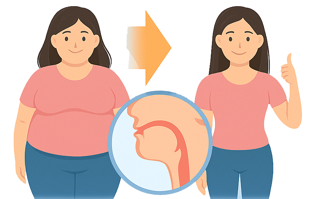 การลดน้ำหนักช่วยลดอาการนอนกรนได้จริง โดยเฉพาะในผู้ที่มีน้ำหนักตัวเกินหรือเป็นโรคอ้วน เหตุผลก็เพราะว่าไขมันส่วนเกินโดยเฉพาะบริเวณคอไปกดทับทางเดินหายใจ ดังนั้นการลดน้ำหนักลงแม้เพียงเล็กน้อย ก็ช่วยให้เนื้อเยื่อบริเวณคอหอยหย่อนคล้อยลง ทางเดินหายใจมีพื้นที่กว้างขึ้นอากาศผ่านสะดวก ลดการสั่นสะเทือนเสียงกรนจึงเบาลงหรือหายไป